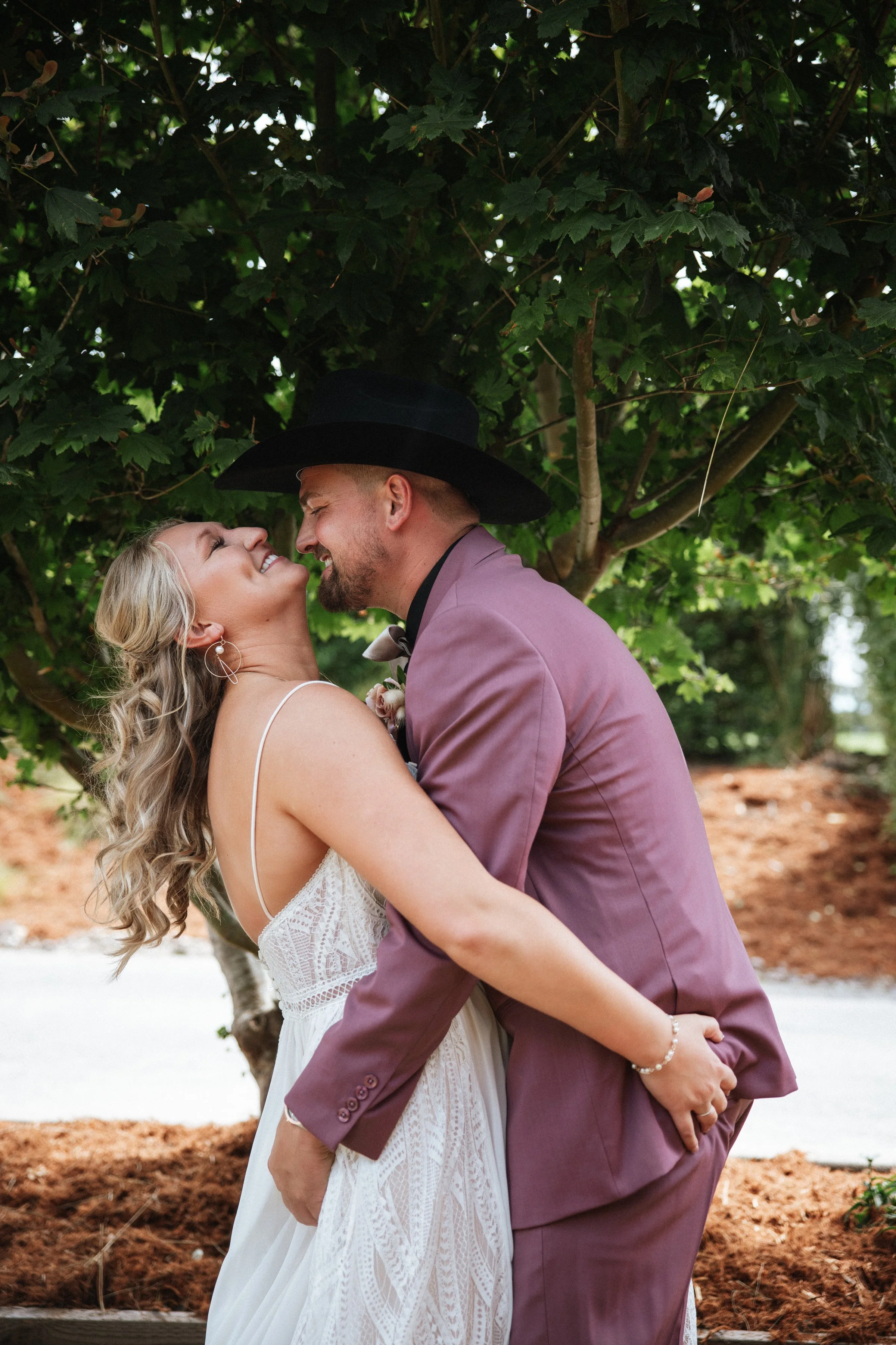 Kaylin and Carter’s story goes back to childhood. They grew up together playing sports, their families closely connected, and even crossed paths with Carter as Kaylin’s soccer coach. After losing touch for a time, they reconnected in 2020 and built a relationship rooted in shared adventures—hunting, fishing, and exploring the outdoors together, even through the COVID years. Carter proposed in 2024 on their property, making it especially meaningful that they chose the same place to begin their marriage.